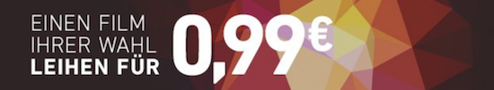 Die Nachwirkungen des Tiefdruckgebiets Egon sind nach wie vor spürbar. Soll heißen, es könnte ein gemütliches Wochenende daheim auf der Couch werden. Ein Blick in die Fernsehzeitung sorgt zumindest aus meiner Sicht am heutigen Abend alleridngseher für Ernüchterung. Insofern erfreut doch eine aktuelle Aktion des Online-Kaufhauses Amazon das Herz. Dort gibt es nämlich aktuell eine Aktion, bei der jeder registrierte Kunde einmalig einen beliebigen Film für nur € 0,99 ausleihen kann. Hierzu sucht man sich einfach den gewünschten Leih-Film aus dem Amazon-Angebot aus und klickt auf der Detailseite des Films auf den Link "Kauf- und Leihoptionen". Dort lässt sich dann die Option "Geschenkgutschein oder Promotioncode einlösen" wählen, wo man den Aktionscode LEIHEN99 eingibt. Anschließend schließt man das Fenster wieder und klickt auf "SD ausleihen" oder "HD ausleihen". Fertig! Wichtig: Der Code gilt nur für das Leihen eines Films, nicht für den Kauf von Filmen oder Kauf und Leihe von TV-Serien. Der ausgeliehene Film kann anschließend am Rechner, auf dem iPad oder iPhone oder einem Smart TV angeschaut werden. Ein Klick auf den Banner unten führt direkt zur Amazon-Aktionsseite. Gute Unterhaltung!
