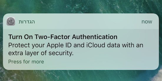 Apple weist in iOS 10.3 per Push Notification auf Aktivierung der Zwei-Faktor-Authentifizierung hin