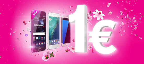 Passend zum sich zart anbahnenden Frühling startet die Telekom aktuell eine Aktion, bei der man sich verschiedene Smartphones, darunter auch das iPhone 7 für nur € 1,- sichern kann. Hierfür ist wie gehabt der Abschluss eines neuen Laufzeitvertrag über 24 Monaten erforderlich. Das Angebot gilt für Top-Smartphones in ihrer jeweils kleinsten Speichervariante. Bei den Verträgen hat man die Wahl zwischen den Tarifen MagentaMobil S bis MagentaMobil L Plus, Premium sowie sämtlichen Friends-Varianten. Die Aktion läuft noch bis zum 12. März 2017. Ein Klick auf den folgenden Banner führt direkt zu den Aktionsseiten bei der Telekom.