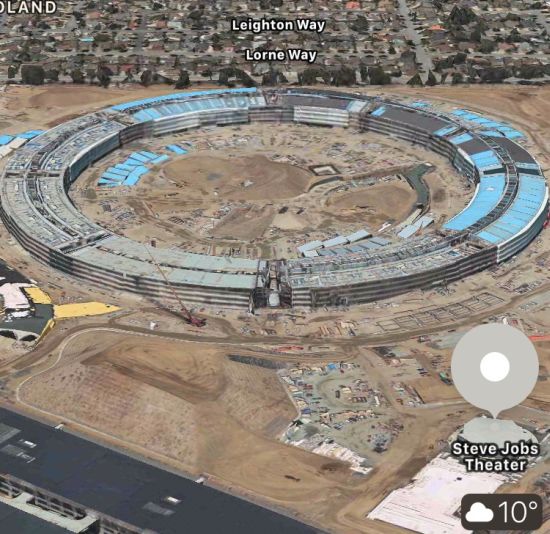 Der Apple Park, Apples neuer UFO-förmiger und von Steve Jobs entworfener Firmencampus befindet sich auf der Zielgeraden seiner Fertigstellung. Und auch wenn er in der Realität bereits deutlich weiter vorangeschritten ist als auf den Satelliten- und 3D-Bildern, die Apple nun in seiner hauseigene Karten-App eingepflegt hat, ist dies ein schönes Beispiel dafür, wie schnell Apple inzwischen serverseitige Inhaltsupdates für seinen Google-Maps-Konkurrenten einpflegt. Nach den verschiedenen Drohnenvideos, die immer wieder vom Baufortschritt in Cupertino berichteten, kann man nun also auch virtuell selber einen virtuellen Rundflug über den Apple Park unternehmen. Entdecken kann man dabei selbstverständlich auch die umgebende Landschaft und die weiteren kleinen Gebäude, wie unter anderem auch das "Steve Jobs Theater". Dieses kann man auch direkt als Suchbegriff verwenden, um in den Apple Karten am Mac, iPhone oder iPad direkt zu dieser Location befördert zu werden.