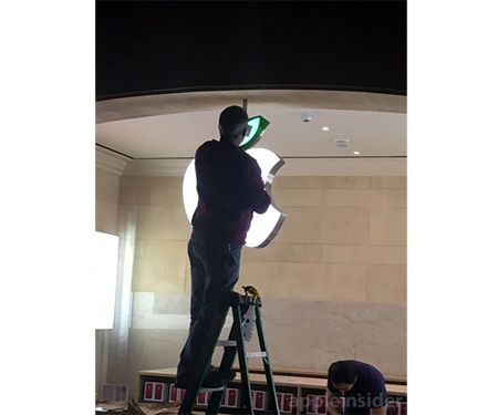 Der Earth Day am 22. April wird von Apple jedes Jahr mit jeder Menge Aktionen begleitet. Auch in diesem Jahr färben sich dabei die Apple Retail Stores rund um den Globus grün und auch die Mitarbeiter tragen die Unterstützung ihres Unternehmens sichtbar nach außen. So tauschen sie ab dem 20. Apri, ihre traditionell blauen T-Shirts für einige Tage gegen grüne Shirts, passend zum Earth Day. Wie auch schon in den vergangenen Jahren leuchtet das Blättchen über den Apfel-Logos an den Retail Stores in den kommenden Tagen grün. Die Installationsarbeiten hierzu haben bereits begonne, wie das unten zu sehende Foto der Kollegen von AppleInsider zeigt.