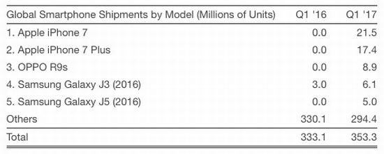 Erst kürzlich hat sich das iPhone seit langer Zeit mal wieder gegen die Konkurrenz von Samsung durchgesetzt und sich zum meistverkauften Smartphone gekürt. Dieser Trend hielt auch im letzten Quartal an, wie die Analysten von Strategy Analytics vermelden. Und nicht nur das - man hat den Vorsprung sogar noch weiter ausbauen können. Dabei waren das iPhone 7 und iPhone 7 Plus die beiden beliebtesten Modelle mit 21,5 Millionen bzw. 17,4 Millionen verkauften Einheiten. Dahinder folgt das chinesische OPPO R9 Smartphone mit einem respektablen Abstand von 8,9 Millionen Geräten, ehe mit dem Samsung Galaxy J3 und J5 die ersten Modelle des großen Apple-Konkurrenten einlaufen. Sollte das iPhone 8 im Herbst nur ansatzweise das halten, was sich die Analysten davon versprechen, dürfte Apple auch in den kommenden Monaten seine Position halten.