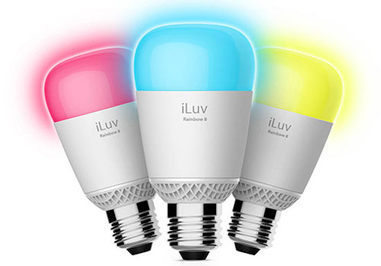 Während das Beleuchtungssystem Philips Hue inzwischen auch Lampen mit E14-Fassung im Angebot hat, benötigt man zur Steuerung des Systems nach wie vor eine WLAN-Bridge, über die alle Elemente verbunden sind. Dass es auch anders geht, zeigt nun das Unternehmen iLuv mit seiner Rainbow8 (€ 60,60 bei Amazon). Hierbei handelt es sich um die erste HomeKit-kompatible Glühbirne mit direkter WLAN-Anbindung. Eine Bridge zur (Farb-)Steuerung der Lampen ist demnach also nicht mehr notwendig. Entsprechend einfach gestaltet sich auch die Ersteinrichtung der Rainbow 8. Diese wird einfach in eine passende E27-Fassung geschraubt und anschließend über die zugehörige Rainbow-App (kostenlos im AppStore) oder eine andere HoneKit-App mit dem WLAN verbunden.