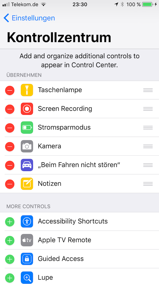 Inzwischen hat Apple die erste Beta von iOS 11 an die registrierten Entwickler verteilt und schon tauchen die ersten bislang nicht weiter kommunizierten kleinen Neuerungen auf. So wird sich das Kontrollzentrum unter iOS 11 künftig deutlich mehr an die individuellen Bedürfnisse anpassen lassen, als dies bislang der Fall war. Neben der neuen Optik kann man so in den Einstellungen auch festlegen, welche Apps am unteren Rand des Kontrollzentrums angezeigt werden sollen. Hierzu stellt Apple aktuell eine Reihe von Sytemfunktionen und hauseigenen Apps zur Verfügung. Die untere Reihe ist zudem nicht mehr auf nur vier Icons begrenzt, sondern kann auch mehrere Reihen umfassen.