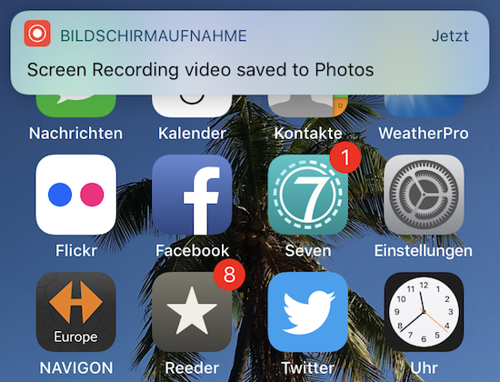 Wer beim letzten Artikel zum neuen Kontrollzentrum unter iOS 11 genau hingesehen hat, wird bemerkt haben, dass es in den Einstellungen einen Punkt namens "Screen Recording" gibt. Apple hat hier in der Tat eine neue Funktion integriert, die direkt auf dem Gerät eine Bildschirmaufzeichnung ermöglicht. Tippt man auf das Icon, startet unmittelbar eine neue Bildschirmaufnahme, die durch einen blauen Balken am oberen Bildschirmrand angezeigt wird. Tippt man auf diesen Balken, stoppt die Aufnahme und ein Pop-Up erscheint, in dem man gefragt wird, ob man die Aufnahme wirklich beenden möchte. Soll dies geschehen, wird die Aufnahme in der Fotos-App auf dem Gerät abgelegt.