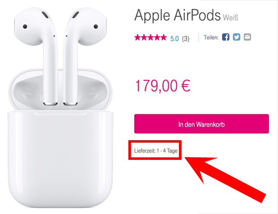 An Apples AirPods interessiert? Die Telekom liefert in 1-4 Tagen!