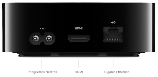 Eine ebenfalls spannende Entdeckung liefern die technischen Daten zum Apple TV 4K. Während die meisten Neuerungen eher im Inneren zu finden sind, verfügt die neue Generation der Set-Top Box nun auch wieder über einen Gigabit-Ethernet-Port. Dies ist wohl auch bitter nötig, damit der 4K-Auflösung auch die vierfache Menge an Daten übertragen werden muss, verglichen mit HD-Filmen. Die aktuelle Generation des Apple TZ verfügt derzeit lediglich über einen 10/100 Mbit/s Ethernet-Anschluss. Auf der anderen Seite hat Apple den bislang vorhandenen USB-C Port gestrichen, weswegen unklar ist, wie man künftig ein abgestürztes Apple TV wiederherstellen kann.