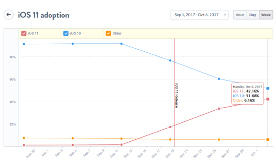 Auch am heutigen Freitag werfen wir einen schnellen Blick auf die aktuelle Verbreitung von iOS 11 seit seiner Veröffentlichung vor gut zwei Wochen. Wie erwartet, schreitet die Verbreitung weiter kräftig voran, so dass wir Anfang dieser Woche einen Wert von 42,16% erreicht haben. 51,68% der Nutzer sind noch mit iOS 10 unterwegs, der Rest setzt den Zahlen von Mixpanel zufolge auf eine noch ältere iOS-Version. Damit dürfte es nicht mehr allzu lange dauern, bis iOS 11 seinen direkten Vorgänger überholen wird. Die Verbreitungsrate ist seit jeher eine Stärke von iOS und ein wahrer Segen für die AppStore-Entwickler, die hierdurch nicht über einen längeren Zeitraum mehrere verschiedene und auch ältere Systeme unterstützen müssen. Allerdings dürften auch die zuletzt aufgekommenen Fehlerberichte in iOS 11 manchen Nutzer nach wie vor davon abhalten, auf das neue System umzusteigen. Spätestens mit Version 11.1 sollte Apple diese aber ausgeräumt haben. Auch der damit einhergehende Verkaufsstart des iPhone X wird spätestens dann dafür sorgen, dass die Verbreitung von iOS 11 weiter voranschreiten wird. Und damit nun viel Spaß mit den AppStore Perlen dieser Woche!