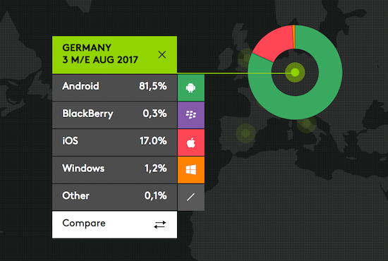 Nach wie vor gibt es eigentlich nur zwei wirklich ernstzunehmende mobile Betriebssysteme am Markt: iOS und Android. Traditionell ist das Apple-System in den USA besonders stark, während in anderen Regionen der Welt, darunter auch Deutschland Android ganz klar den Ton angibt. Aktuellen Zahlen der Marktbeobachter von Kantar Worldpanel konnte Apple jedoch im August 2017 zum Teil deutlich zulegen, während Android nur minimal gewachsen ist. Und dies gilt nicht nur für die USA, sondern auch für Deutschland. Den Analysten zufolge kommt Android hierzulande auf einen Marktanteil von 81,5% und legt damit im Vergleich zum Vorjahr 0,2% zu. Apple hingegen konnte seinen Marktanteil gleich um knapp 3% von 14,2% im August 2016 auf nun 17% erhöhen.
