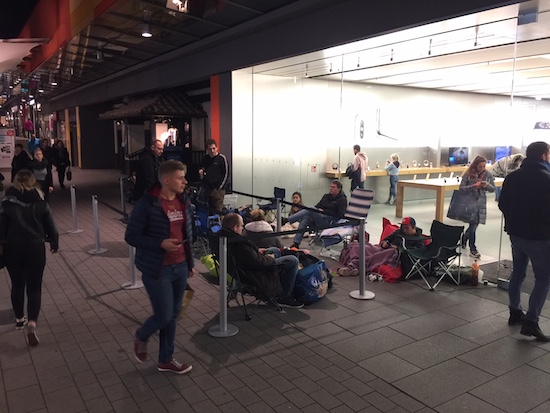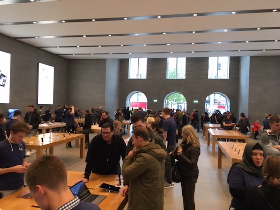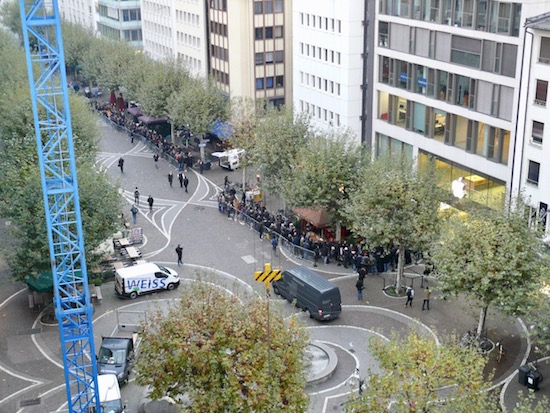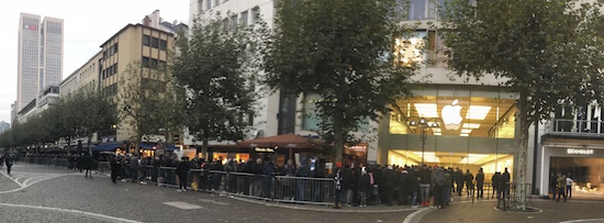 Die meisten Frühkäufer haben also tatsächlich ihr Gerät gestern bereits erhalten. Manche Analystenmeinungen sprechen davon, dass bis zu 12 Millionen Geräte vorbestellt wurden. Dennoch senkte Apple die Lieferzeite im Online Store jüngst von fünf bis sechs auf nur noch drei bis vier Wochen. Über die Hälfte der Vorbestellungen (6,5 Millionen Geräte) sollen übrigens aus China gekommen sein. Diese Vorbestellungen trafen gestern entweder per Kurier bei den Kunden zu Hause ein oder man holte sich das Gerät in einem Apple Store in der Nähe ab. Doch auch Spontan-Käufer konnten in der Regel noch ihr gewünschtes Modell ergattern, wenn sie halbwegs früh vor Ort waren. Im Anschluss eine kleine Galerie von Impressionen aus den verschiedensten Winkeln Deutschlands, die mir meine Leser zukommen lassen haben. Mit bestem Dank an Patrick, Nils, Andreas, Heinz, Gerd und Daniel.