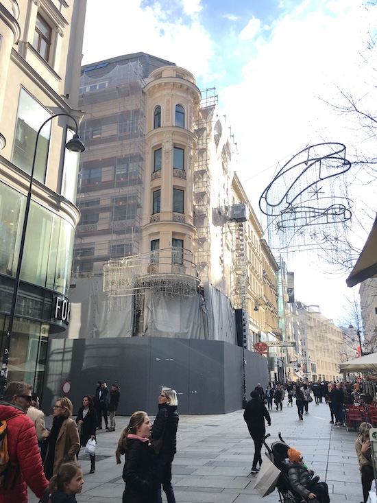 Lange gab es keine Neuigkeiten mehr zum inzwischen im Bau befindlichen Apple Store in der Wiener Kärntner Straße in unmittelbarer Nähe zum Stephansplatz. Nun versorgt mich mein Leser Holger (vielen Dank dafür!) mit ein paar aktuellen Bildern und Informationen aus Wien. Ursprünglich hatte Apple gehofft, das erste Ladengeschäft in Österreich noch zum Weihnachtsgeschäft eröffnen zu können. Dass hieraus wohl nichts werden wird, ist nicht nur den unten zu sehenden Bildern zu entnehmen, sondern deckt sich auch mit den Informationen von Holger. Wie bereits bekannt, wird Apple sämtliche Stockwerke des historischen Gebäudes beziehen. Wie Holger berichtet, sollen in den unteren beiden Geschossen Verkaufsflächen entstehen, die drei Geschosse darüber zur Seitenstraße hin werden für Firmenschulungen, Geschäftskundenbetreuung und Büroräume genutzt. Aktuell wird noch an allen Ecken und Enden und teilweise auch noch mit schwerem Gerät gearbeitet. An der Fassade ist bislang noch gar nicht Hand angelegt worden. Die Eröffnung wird also definitiv erst im kommenden Jahr stattfinden, wie inzwischen auch die Presse in Österreich berichtet. Aber wie sagt man doch so schön? Lieber spät als nie!