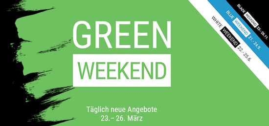 Zusätzlich zur aktuell bei Amazon laufenden Oster-Angebote-Woche kann man an diesem Wochenende auch beim Onlinehändler Cyberport kräftig sparen. Dort hat man nämlich bis zum kommenden Montag das "Green Weekend" ausgerufen, zu dessem Anlass man jede Menge Produkte aus dem Sortiment reduziert. Sämtliche Deals lassen sich auf der entsprechend geschalteten Sonderseite einsehen. Wie angekündigt, wurde die gestern veröffentlichte Liste heute um weitere Produkte ergänzt. Selbstverständlich gelten die Deals von gestern nach wie vor, allersings auch weiterhin nur solange der Vorrat reicht.