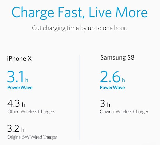 Vor einigermaßen genau einer Woche hatte ich bereits auf das neue Anker PowerWave Qi-Ladepad (€ 39,99 bei Amazon) mit einer Leistung von 7,5 Watt hingewiesen, welches sich entscheidend von den meisten anderen Ladepads unterscheidet. Die 7,5 Watt ermöglichen nämlich das Laden von iPhone X, iPhone 8 und iPhone 8 Plus mit der maximal möglichen Leistung. Hierzu hat man auch das von Apple zu diesem Zweck geforderte spezielle Design der Ladespulen verbaut. Seit heute nun ist auch das zweite Ladegerät aus Ankers PowerWave-Familie in Deutschland erhältlich, der Anker PowerWave 7.5 Ladeständer (€ 45,99 bei Amazon). Selbstverständlich gilt auch für diesen, dass die Qi-fähigen iPhones mit voller Leistung geladen werden.