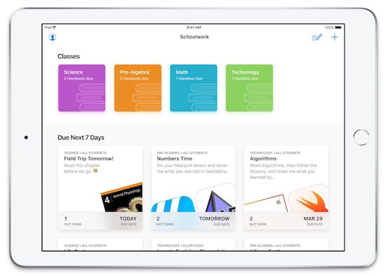 Wer sich für die neue Schoolwork-App interessiert, die Apple auf dem Bildungsevent Ende vergangenen Monats in Chicago vorgestellt hatte, sollte aktuell mal einen Abstecher zu den Kollegen von 9to5Mac wagen. Diese sind nämlich von jemandem, der an dem Beta-Prozess dieser App beteiligt ist, mit Screenshots und Informationen zur Nutzung von Schoolwork versorgt worden und haben diese in der vergangenen Nacht veröffentlicht. Was dabei zu sehen ist, kommt einem auf der einen Seite bekannt vor und macht auf der anderen Seite auf mich den Eindruck, als könnte diese App tatsächlich einen Mehrwert für Lehrende und Lernende gleichermaßen darstellen.