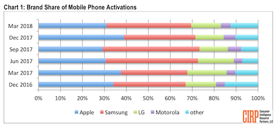 Um die Weihnachtszeit herum ist es traditionell Apple, wo man mit seinem iPhone die meisten Aktivierungen unter den Smartphones für sich verzeichnen kann. Im Rest des Jahres hat, speziell in den USA, jedoch Konkurrent Samsung die Nase vorn. So auch in den aktuellen Zahlen von CIRP, die nun veröffentlicht wurden. Demnach entfielen im 1. Quartal 2018 39% aller neu aktivierten Smartphones in den USA auf die Südkoreaner. Das iPhone erzielte im selben Zeitraum 31% und landet damit auf dem zweiten Platz, vor LG mit 14%. Damit spiegeln die Zahlen auch die Effekte der neuerschienenen Smarrphones wider. Kommen im Weihnachtsquartal traditionell die neuen iPhones auf den Markt, sind jüngst im März die neuen Samsung Flaggschiffe Galaxy S9 und Galaxy S9 Plus erschienen.