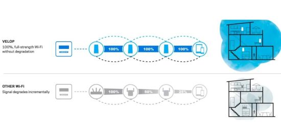 Als großer Vorteil von Mesh-WLANs wird oftmals die Reichweitenvergrößerung von WLANs genannt. Kamen hierbei oftmals WLAN-Repeater zum Einsatz, hat dieses Vorgehen den Nachteil, dass sich damit die Leistung des Netzes nicht wirklich verbessert, da die Geschwindigkeit zwischen Hauptrouter und Repeater letzten Endes das ist, was auch der am Repeater hängende Client letzten Endes maximal nutzen kann. Bei Mesh-WLANs wird dies anders gelöst. Hier macht man sich die Technologie von Ad-Hoc Netzwerken zunutze, wodurch die Daten von einem zum nächsten WLAN-Gerät weitergegeben werden, ehe sie vom am nächsten am Router befindlichen Knoten an diesen zugestellt werden.
