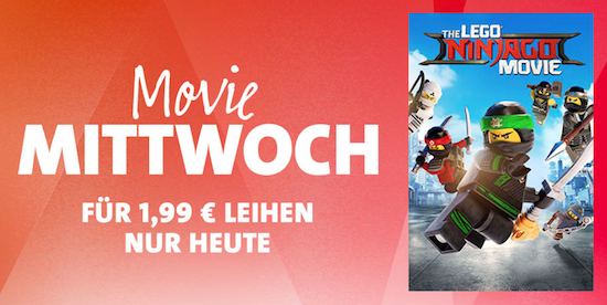 Auch heute hat Apple wieder den sogenannten "Movie Mittwoch" ausgerufen. Dabei wird jeden Mittwoch ein ausgewählter Film aus dem iTunes-Sortiment für 24 Stunden zum Sonderpreis von nur € 1,99 in HD-Qualität zum Leihen angeboten. Heute erhält man dabei das Klötzchen-Animations-Abenteuer The LEGO Ninjago Movie. Nachdem man den Leih-Film geladen hat, kann er innerhalb von 30 Tagen angeschauen werden. Wie immer bei geliehenen Filmen aus dem iTunes Store gilt: Hat man hiermit einmal begonnen, muss man ihn innerhalb von 48 Stunden beenden.