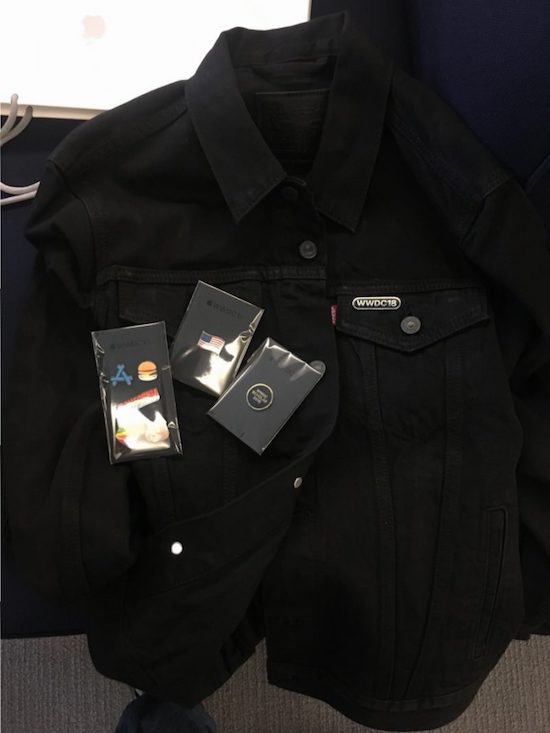 Apples Keynote zur Eröffnung der WWDC beginnt morgen Abend um 19:00 Uhr deutscher Zeit. Bereits jetzt sind aber natürlich diverse Entwickler vor Ort, die das Glück hatten, in Apples Lotterie ausgewählt geworden zu sein, eine Eintrittskarte erwerben zu dürfen. Bei ihrer Registrierung für die Konferenz erhielten sie auch in diesem Jahr wieder eine Tasche mit Begrüßungsgeschenken von Apple, deren Inhalt inzwischen auf sozialen Medien hinreichend dokumentiert wurde. Wie auch schon im vergangenen Jahr findet man in der Tasche eine schwarze Levi's Jeansjacke und verschiedene Ansteck-Pins mit Bezug zu Apple und der WWDC.