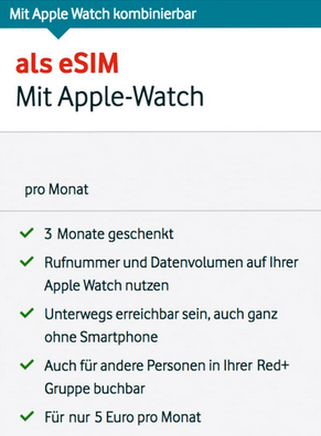 Seit Apple seine mobilfunktaugliche Apple Watch Series 3 im vergangenen Jahr vorgestellt hat, kann man sie in Deutschland ausschließlich im Netz der Telekom nutzen. Ab heute muss man nun sagen "konnte". War es bislang so, dass lediglich der magentafarbene Riese die benötigte eSIM unterstützte, zieht mit dem heutigen Tage nun auch Vordafone nach, wie der Konzern auf der CeBIT in Hannover bekanntgab. Der zugehörige Vertragsangebot nennt sich bei Vodafone Red+ MultiSIM und lässt sich mit einem Aufpreis von € 5,- pro Monat ab sofort im Kundencenter zu einem bestehenden Red- oder Young-Vertrag hinzubuchen.