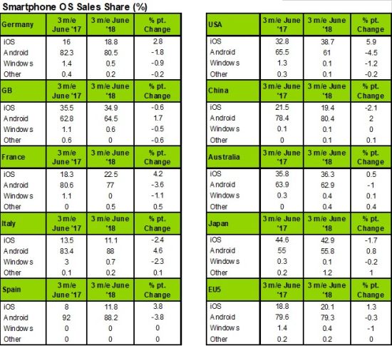 Zweites Quartal 2018: iOS gewinnt Marktanteile in den USA und Europa