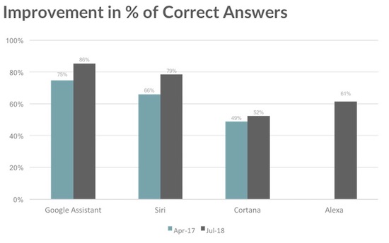 Apples persönlicher Sprachassistent Siri stand in den vergangenen Monaten massiv in der Kritik. Und auch ich habe mehrfach angemerkt, dass Siri bei mir auf sämtlichen Geräten deaktiviert ist, da ich nicht wirklich einen Anwendungsfall hierfür habe. Bei anderen Nutzern ist es vor allem die Qualität der Antworten, die von Siri kommen, die zu Unmut führen. Loup Ventures hatte hierzu vor einem guten Jahr einmal einen Test durchgeführt, bei dem herausgekommen war, dass Siris Antworten teils deutlich hinter denen der Konkurrenz aus Amazon Alexa, Google Assistant und Co. zurück. Nun haben die Kollegen einen neuen Test gefahren (via MacRumors) und dazu Siri, Google Assistant, Alexa und Cortana mit jeweils 800 Fragen auf einem Smartphone gefüttert und die Ergebnisse miteinander und auch mit dem Test aus dem April 2017 verglichen.