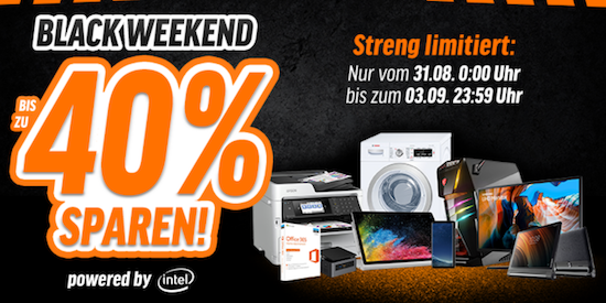 Der Black Friday ist zwar auch in diesem Jahr wieder erst im November, bereits an diesem Wochenende ruft man jedoch beim Internet-Versandhändler Notebooksbilliger.de das "Black Weekend" aus. Dabei wurden jede Menge hochkarätige Produkte zum teil drastisch im Preis gesenkt. Schön dabei: Die Deals gelten sowohl heute, als auch noch das gesamte Wochenende über bis zum kommenden Montag. Dabei verspricht notebooksbilliger.de "bis zu 40% Ersparnis" bei Verwendung der kategoriespezifischen Rabattcodes. Allerdings gelten alle Angebote natürlich nur solange der Vorrat reicht.