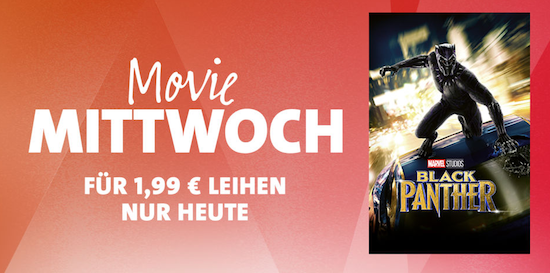 Auch heute hat Apple wieder den sogenannten "Movie Mittwoch" ausgerufen. Dabei wird jeden Mittwoch ein ausgewählter Film aus dem iTunes-Sortiment für 24 Stunden zum Sonderpreis von nur € 1,99 in HD-Qualität zum Leihen angeboten. Heute erhält man dabei dMarvel Superhelden Action-Kracher Black Panther. Nachdem man den Leih-Film geladen hat, kann er innerhalb von 30 Tagen angeschauen werden. Wie immer bei geliehenen Filmen aus dem iTunes Store gilt: Hat man hiermit einmal begonnen, muss man ihn innerhalb von 48 Stunden beenden.