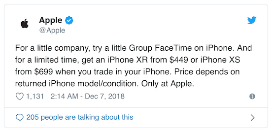 Insofern verwundert es auch nicht, dass Apple noch einmal seine Marketing-Bemühungen rund um die aktuellen iPhones angeschmissen hat. In seinen Retail-Stores wird aktuell beinahe jede Möglichkeit genutzt, um auf die neuen Geräte aufmerksam zu machen. So erstrahlt inzwischen auf so ziemlich allen dort zu findenden Displays eine iPhone-Werbung, sei es auf den Genius Bar Displays, den Apple TV Demo-Geräten oder den "Today at Apple" Foren-Displays. Auch in der Apple Store App, sowie teilweise in den AppStores erscheint dieser Tage großflächig Werbung für das iPhone XS und iPhone XR. Und sogar auf dem ansonsten eher brachliegenden Twitter-Account weist man dieser Tage auf die Möglichkeiten und den (vergleichsweise) günstigen Preis des iPhone XR hin. Ob es am Ende hilt, muss freilich abgewartet werden.