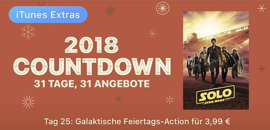 Man wird das Gefühl nicht los, als würde Apple derzeit in seinem iTunes Store eine Art "Jahres-End-Verkauf" durchführen. Nachdem man kürzlich erst jede Menge gute Serien dort günstiger angeboten hatte, legt man nun noch einmal bei den Filmen nach. Zusätzlich zum noch bis Silvester laufenden "2018 Countdown" bietet Apple nun auch verschiedene Film-Bundles in seinem Multimedia-Kaufhaus an. Diese finden sich übersichtlich auf einer Sonderseite im iTunes Store oder in der Liste im Anschluss. Wer also noch ein wenig Video-Futter für zwischen den Jahren sucht, wird aktuell sicherlich fündig.