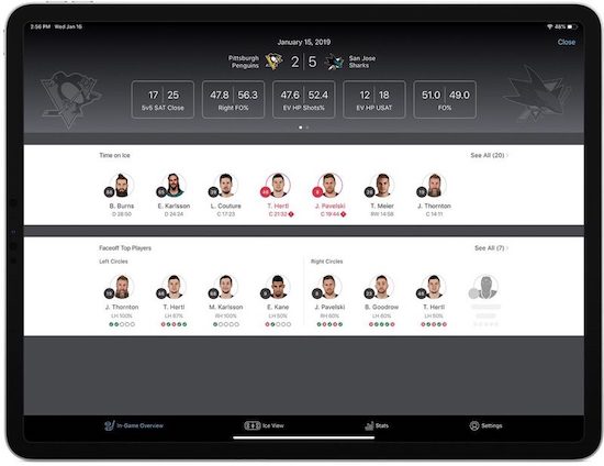 Unter anderem stellt die NHL den Teams seit einiger Zeit bereits iPad Pros hinter der Bank zur Verfügung, auf denen die Spieler und Coaches Echtzeit-Videos und Zeitlupen sehen können, um das eigene Spiel anpassen oder auch Schiedsrichter-Entscheidungen hinterfragen zu können. Bereits Anfang des Monats hatte die NHL angekündigt, dass sie den Teams in Kürze zudem eine neue "Coaching Insights App" für das iPad zur Verfügung stellen wird, die in Kooperation von Apple, der NHL und SAP entstanden ist und Echtzeit-Statistiken von 35 Spielern und 30 Teams zur Verfügung stellen wird.