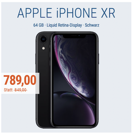 Auch am heutigen Donnerstag lockt der Apple-Händler Cyberport wieder mit einem spannenden Angebot in seinen Cyberdeals. Dort lässt sich aktuell das iPhone XR mit 64 GB Speicherplatz in schwarz für nur € 789,- erwerben. Damit liegt der aktuelle Preis um € 60,- unter den normalerweise (auch von Apple selbst) veranschlagten € 849,-. Wie gehabt, verlangt Cyberport darüber hinaus auch keine Versandkosten für den Standardversand. Das Angebot gilt selbstverständlich nur solange der Vorrat reicht. Der folgende Link führt direkt zur Angebotsseite bei Cyberport: iPhone XR im Cyberdeal