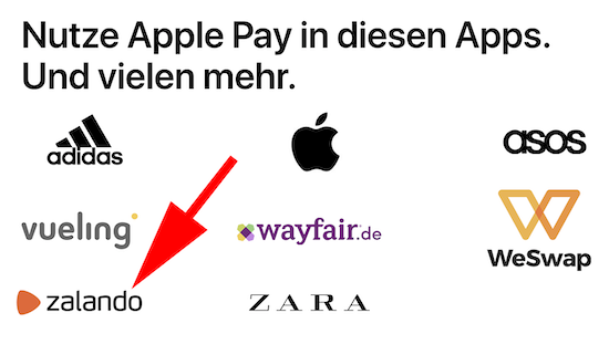 Ursprünglich zähle Zalando zu den Start-Partnern von Apple Pay in Deutschland und wird auch nach wie vor auf den Apple Pay Webseite gelistet.