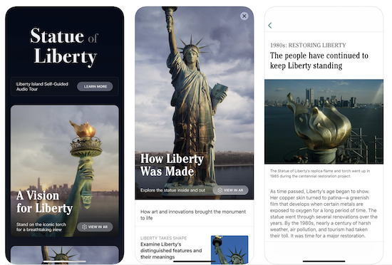 Die Erstellung der App, die von Diane von Fürstenberg konzipiert wurde, dauerte über ein Jahr und beinhaltete laut der Vogue unter anderem das Scannen der Statue, das Erstellen von Fotos und auch das Aufzeichnen eines Timelapse-Videos. Die Hauptfunktionalität sind jedoch die verschiedenen 3D-Modelle der Statue, die sich auch in die heimischen vier Wände projezieren lassen. Neben der kompletten Statue gibt es dabei auch Details wie ihren Fuß oder die Fackel zu erkunden.