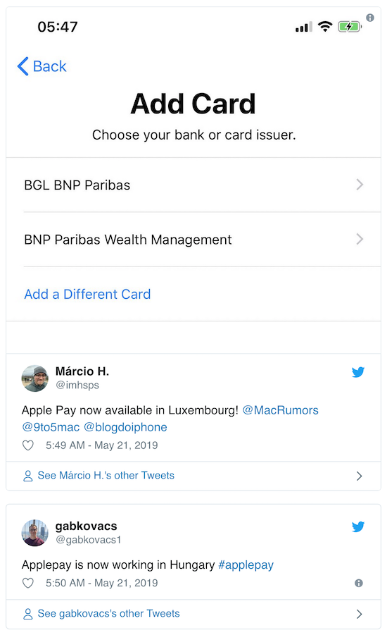 Erst kürzlich wurde bekannt, dass Apple Pay in Kürze wohl in 16 weiteren europäischen Ländern an den Start gehen wird. Nutzer aus den ersten beiden davon vermelden am heutigen frühen Morgen, dass der Dienst inzwischen bei ihnen zur Verfügung steht. Dabei handelt es sich um Ungarn und Luxemburg, wo Besitzer eines iPhone, iPad, einer Apple Watch oder eines Macs nun auch über Apples mobilen Bezahldienst einkaufen können. Voraussetzung ist natürlich auch hier ein Konto bei einer teilnehmenden Bank. In Luxemburg handelt es sich hierbei um BGL BNP Paribas, in Ungarn um die OTP Bank. Mit dem Start in den beiden neuen Ländern kommt Apple Pay nun auf eine Verbreitung von 40 Ländern. Dieses Ziel hatte Apple CEO eigentlich für das gesamte Jahr ausgegeben. Derzeit sieht es eher danach aus, als sollten es jedoch eher 50 Länder werden. Angekündigt ist der Dienst so auch noch für Bulgarien, Kroatien, Zypern, Estland, Griechenland, Litauen, Lettland, Liechtenstein, Malta, die Niederlande, Portugal, Rumänien, die Slowakei und Slowenien.