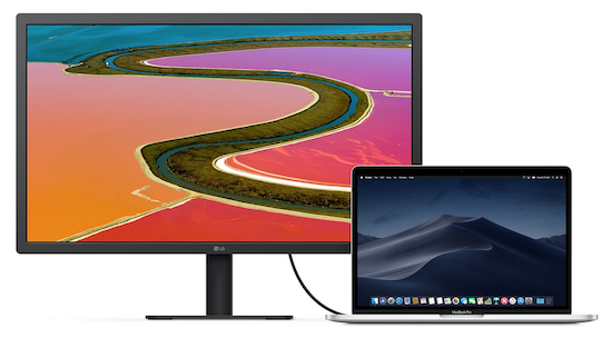 Ein Mac lässt sich mit einem einzige Thunderbolt 3 Kabel anschließen, worüber er zugleich auch mit 85 Watt geladen werden kann. Zudem verfügt das Display zwei Thunderbolt 3 Anschlüsse, was eine Verbesserung gegenüber dem einzelnen Anschluss war, den die Vorgängermodelle noch besaßen. Hierüber lassen sich auch verschiedene Geräte in Reihe geschaltet mit dem Mac verbinden. Zudem verfügt das neue Display über drei USB-C Anschlüsse und Stereo-Lautsprecher.
