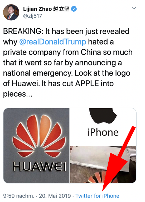 Einen amüsanten Fauxpas hat sich indes Zhao Lijian, Chef de Mission in der chinesischen Botschaft in Islamabad geleistet, der mit den folgenden Worten auf Twitter gegen Apple und US-Präsident Donald Trump schoss: