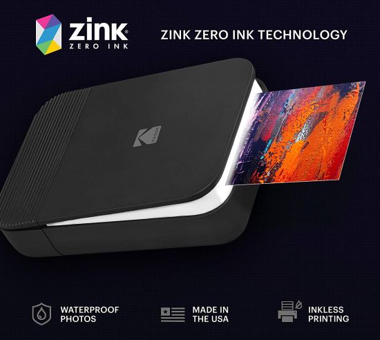 Dennoch haben es sich die Foto-Pioniere von Kodak nicht nehmen lassen, mit dem Kodak Smile (€ 119,99 bei Amazon) einen neuen Foto-Drucker im Hosentaschenformat auf den Markt zu bringen. Dieser setzt auf die farbpartonen- und tonerlose "Zero-Ink-Technologie" (ZINK) und druckt die Fotos stattdessen auf einem Spezialpapier aus. Dank eines integrierten und wiederaufladbaren Akkus kann man das 12 x 8 x 2,3 cm Gerät auch mit in den Urlaub oder zur nächsten Party nehmen, um dort geschossene Fotos direkt auf dem selbstklebenden Papier auszudrucken. Allerdings sollte man die auszudruckenden Bilder gut auswählen, denn das benötigte Spezialpapier ist nicht gerade günstig. Hier kosten 20 Blatt € 14,90 oder 50 Blatt € 24,99 im Format 5 x 7,6 cm bei Amazon. Die Fotos werden direkt per Bluetooth vom iPhone an den Drucker geschickt.