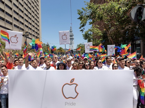 Wie auch schon in den vergangenen Jahren hat Apple auch dieses Jahr wieder an der LGBTQ Pride-Parade in San Francisco teilgenommen. Dabei handelt es sich um eine der größten Paraden dieser Art in den USA mit knapp 100.000 Teilnehmern. Die mitlaufenden Apple-Mitarbeiter trugen Schilder mit dem Apple-Logo in Regenbogenfarben mit sich. Auch Apple CEO Tim Cook, seines Zeichens bekennend homosexuell war bei der Parade anwesend, ebenso wie Apples neue Retail-Chefin Deirdre O'Brien. Apple engagiert sich seit Jahren für Themen wie Gleichberechtigung und Inklusion und Tim Cook wird in Kürze in diesem Zusammenhang auch den diesjährigen GLSEN "Champion Award" entgegennehmen.
