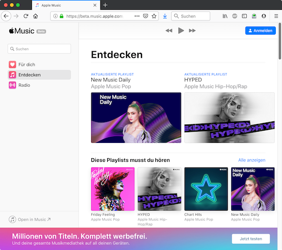 Funktional und inhaltlich orientiert sich die Web-App an Apple Music in iTunes bzw. demnächst dann in der dedizierten Musik-App auf dem Mac und beinhaltet die Bereiche "Für dich", "Entdecken" und "Radio", inkl. sämtlicher Playlisten, Empfehlungen und mehr.