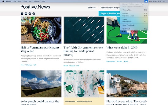 Einen spannenden Ansatz, der seinen praktischen Nutzen allerdings erst noch unter Beweis stellen muss, liefert die neue Mac-App Plash (kostenlos im Mac App Store). Hiermit ist es möglich, eine beliebige Webseite als dynamischen Desktop-Hintergrund zu setzen - und sogar auf ihr zu browsen, sprich zu aktualisieren und Links anzuklicken. Hierzu setzt sich die App in die Menüleiste von Mac OS, von wo aus sie auch verschiedene Konfigurationsmöglichkeiten bietet. Unter anderem setzt man hier die URL der gewünschten Webseite und legt das Reload-Intervall der Webseite oder auch ihre Transparenz fest. Auf Wunsch lässt sich hier auch konfigurieren, ob die Webseite interaktiv im "Browsing Mode" oder statisch angezeigt werden soll.