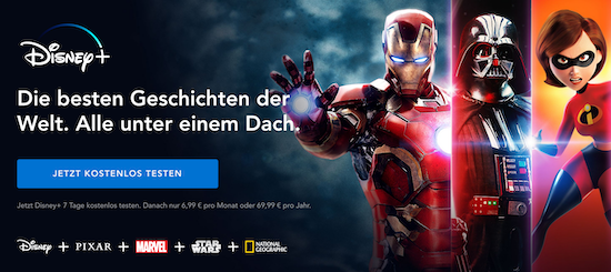 Mit dem Start ist nun auch das bis gestern geltende Frühbucher-Angebot vom Tisch. Um den Dienst auszuprobieren, kann er jedoch sieben Tage lang kostenlos ausprobiert werden. Möchte man anschließend dabei bleiben, kann man das Abo zum Monats- oder Jahrespreis buchen. Zunächst steht Disney+ allerdings nur in reduzierter Auflösung zur Verfügung, wie es auch Netflix, YouTube und Apple TV+ derzeit in Europa vorgemacht haben. Ich wünsche gute Unterhaltung!