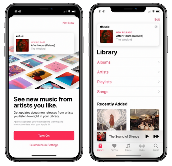Apple hat damit begonnen, ein neues Feature für Apple Music auszurollen, bei dem neue Alben, EPs und Videos von ihren Lieblingskünstlern prominent oben in der Mediathek der Nutzer angezeigt wird. Aktiviert man die Option auf dem eingeblendeten Splashscreen, erscheinen die Einblendungen künftig oberhalb der Alben- und Playlistenansicht in der Mediathek. In den Einstellungen der Funktion lässt sich dabei festlegen, von welchen Künstlern genau man die Benachrichtigungen erhalten möchte. Wie die Kollegen von MacRumors berichten, scheinen noch nicht alle Nutzer diese Option angeboten zu bekommen, was darauf hindeutet, dass Apple die Funktion nach und nach ausrollt. Selbst auslösen oder beschleunigen kann man dies nicht. Hier hilft dann nur Geduld.