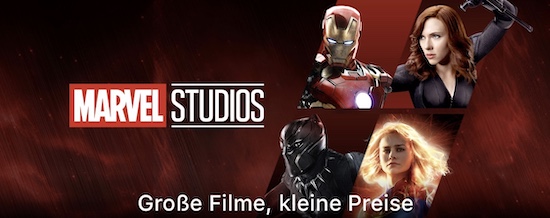 Streaming-Angebote wie Netflix oder Disney+ boomen derzeit aufgrund der Coronakrise wie selten zuvor. Doch auch wenn man sich den einen oder anderen Film gerne dauerhaft in das heimische (virtuelle) Filmregal stellen möchte kann man dieser Tage immer mal wieder sparen. Dies gilt aktuell auch mal wieder für eine Aktion im iTunes Store. Dort finden sich "Große Filme, kleine Preise" verschiedene Filme und Bundles aus dem Marvel-Universum zu reduzierten Preisen. Wie immer bei Kauffilmen gilt, dass sich die Filme, wenn man sie einmal gekauft hat, unbegrenzt oft betrachten und auch jederzeit erneut aus dem iTunes Store herunterladen lassen. Hier die Filme der aktullen Marvel-Aktion: