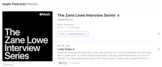 Podcasts sind dieser Tage mal wieder kräftig im Aufschwung. Ein Trend, der selbstverständlich auch Apple nicht entgangen ist. Also nutzt man die gestiegene Reichweite von Podcasts nun geschickt für eine interessante Kombination mit Apple Music. Unter dem Titel "The Zane Lowe Interview Series" steht so seit dieser Woche ein neuer Interview-Podcast zur Verfügung, in dem Beats 1 Chef-Moderator Zane Lowe verschiedenen Musikgrößen in Gesprächen auf den Zahn fühlt. Unter anderem mit dabei sind so namhafte Künstler wie Lady Gaga, Justin Bieber, Kanye West und viele mehr. Oftmals gehen die Interviews mit neuen Werken der Künstler einher. Diese plaudern gegenüber Lowe aber auch aus ihrem täglichen Leben oder über die Story hinter ihren Songs. Aktuell stehen bereits sieben Episoden des Podcasts zur Verfügung. Weitere sollen kontinuierlich ergänzt werden.