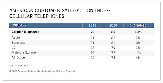 Bereits seit Jahren belegt Apple den ersten Platz wenn es um die Zufriedenheit von Nutzern mit ihrem Smartphone geht. Dies hat sich auch in der aktuellen Datenerhebung von American Customer Satisfaction Index (ACSI) nicht geändert. Apple kommt bei der Umfrage unter 27.346 Nutzern auf einen Zufriedenheitswert von 82%. Dabei konnte man sogar um einen weiteren Prozentpunkt gegenüber dem vergangenen Jahr zulegen. Allerdings rückt Samsung dem iPhone-Hersteller langsam aber sicher auf die Pelle und liegt mit einer Zufriedenheit von 81% nur knapp dahinter. Im zurückliegenden Jahr konnte Apple ACSI zufolge vor allem bei der Zufriedenheit mit der Akkulaufzeit zulegen.