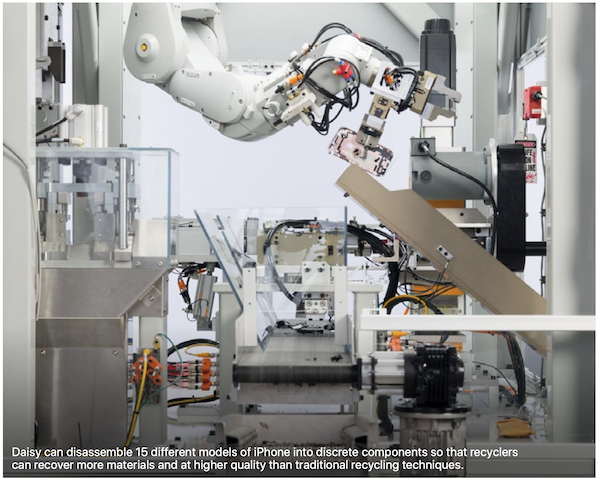 Im Zuge der gestrigen Apple-Ankündigung, die eigenen Produkte bis 2030 komplett klimaneutral zu machen, stellte das Unternehmen auch die neueste Generation seines iPhone-Recycling-Roboters vor. Zur Erinnerung: 2016 hatte man einen solchen Roboter erstmals unter dem Namen Liam vorgestellt und diesen schließlich im vergangenen Jahr durch Daisy ersetzt. Beide Roboter waren in der Lage, pro Stunde ca. 200 iPhones in ihre Einzelteile zu zerlegen, um so die enthaltenen Materialien bestmöglich recyclen zu können. Allerdings sind seither die iPhones noch komplexer geworden, so dass inzwischen auch verschiedene Komponenten noch weiter zerlegt werden können und ab sofort auch sollen.