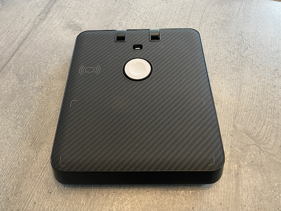 Zwar lassen sich die einzelnen kabellos zu ladenden Geräte nicht frei auf der Oberfläche platzieren, wie sich Apple dies bei seiner legendären AirPower-Ladematte vorgestellt hatte, dies stellt aber nicht wirklich ein Problem dar. Auf der Oberfläche ist deutlich zu erkennen, wo was hingehört und lässt sich dort dann auch problemlos ablegen. Für nicht kabellos zu ladende Geräte befindet sich am oberen Ende der Oberfläche ein Dock-Anschluss samt Ständer, der sich mit einer Taste von Lightning auf USB-C "umschalten" lässt und somit ein aktuelles iPad Pro oder iPad Air oder aber auch ein weiteres iPhone oder eine Apple TV Fernbedienung laden kann.