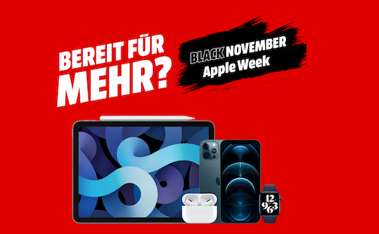 So langsam aber sicher nähern wir uns dem diesjährigen Weihnachtsgeschäft, welches sich aufgrund der Corona-Pandemie in diesem Jahr vermutlich noch mehr online abspielen wird als bereits in den vergangenen Jahren. Ende des Monats stehen dann auch mit dem "Black Friday" und dem "Cyber Monday" wieder die großen Deal-Aktionen an. Bereits jetzt legt jedoch der MediaMarkt mit seinem "Black November" los und beginnt diesen mit der "Apple Week", in deren Rahmen sich verschiedene Apple-Produkte aber auch verschiedene Gadgets vergünstigt erwerben lassen. Wie zu erwarten, sind die aktuellen Modelle von iPhone, iPad und Apple Watch allerdings nicht in die Aktion eingeschlossen. Der folgende Link bringt euch direkt zur Landingpage der Aktion: Apple Week