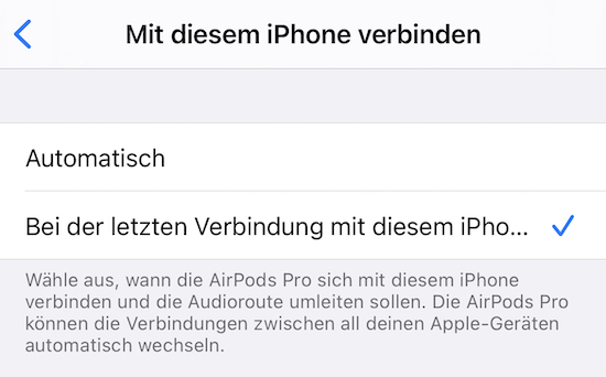 4. Option auswählen "Bei der letzten Verbindung mit diesem iPhone"
