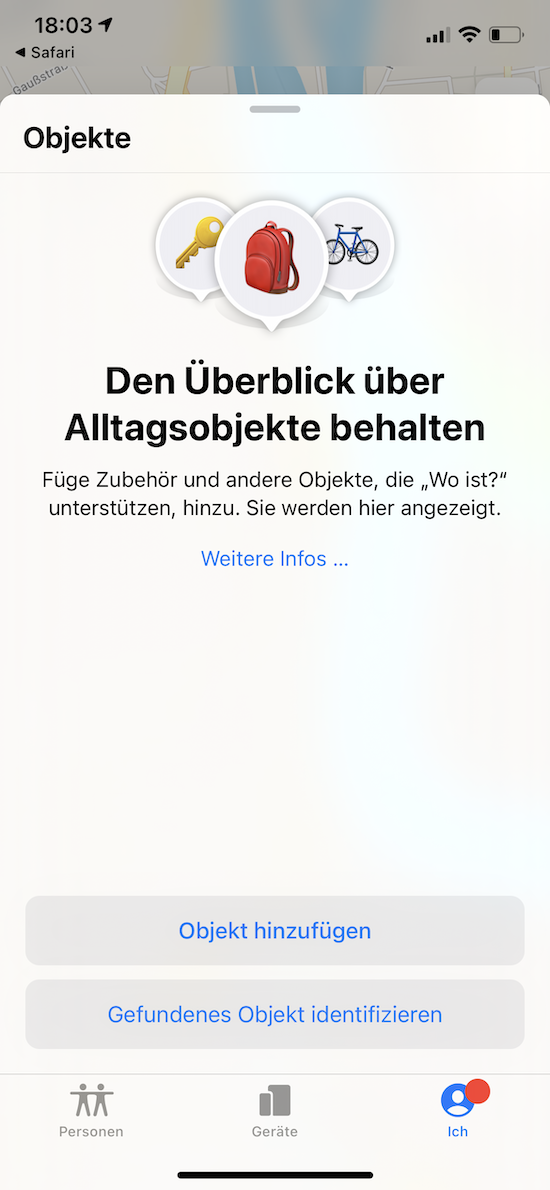 So kann man durch die Eingabe des URL-Schemas "findmy://items" in die Adresszeile von Apples Safari-Browser einen bislang sonst nicht verfügbaren Dialog öffnen, über den sich Objekte in die App aufnehmen lassen, die nicht in die drei momentan verfügbaren Kategorien "Personen", "Geräte" und "Ich" fallen. Nutzbar ist der Dialog für den Moment natürlich noch nicht. Das bloße Vorhandensein des Dialogs ist jedoch ein weiterer Baustein auf dem Weg zur hoffentlich baldigen Vorstellung der AirTags. (via MacRumors)